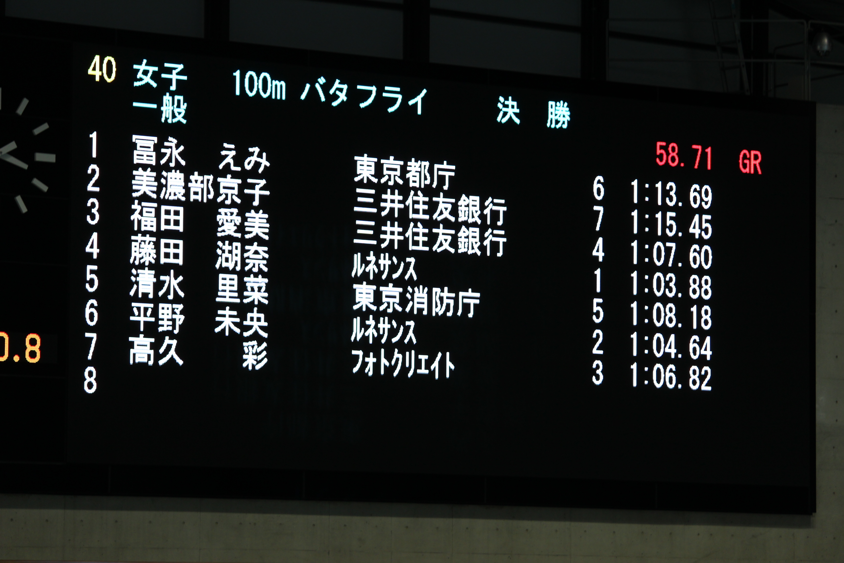 女子100Mバタフライ決勝
