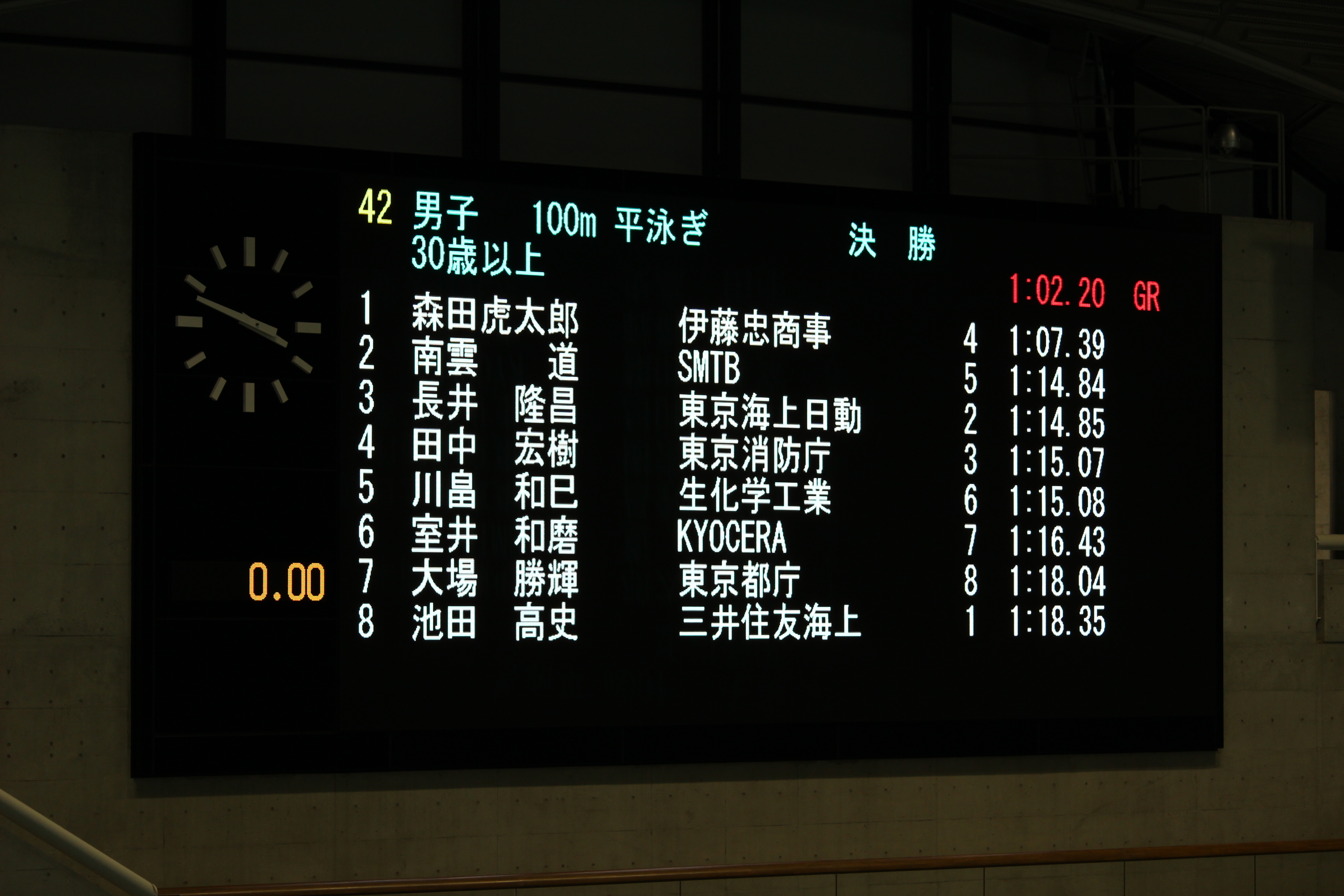 男子30歳以上 100M平泳ぎ決勝